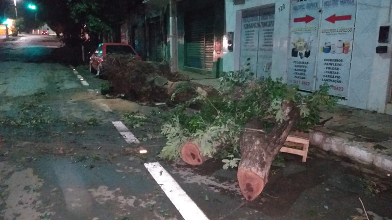 Na manhã desta segunda-feira, moradores e garis da prefeitura estão enfrentando muito trabalho para limpar ruas e calçadas, que ficaram cobertas de folhas e até galhos de árvores, além de muita lama e lixo arrastado pelos ventos.
