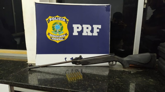 A Polícia Rodoviária Federal (PRF) prendeu um passageiro de um ônibus com uma espingarda e munições, na noite deste domingo (09), durante fiscalização no Km 800 da BR 242, trecho do município de Barreiras (BA), na Região Oeste da Bahia.