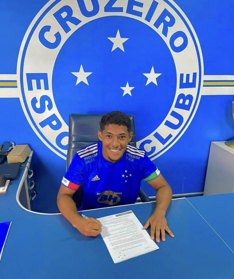 Na noite da última quarta-feira (10), o Cruzeiro anunciou de forma oficial que o volante Kleverton, de 16 anos, assinou o seu primeiro contrato profissional com o clube. No ato da assinatura, o jovem estava acompanhado de sua mãe, tio e Empresário Edilson Leite e Anderson Lili, da empresa LLA.