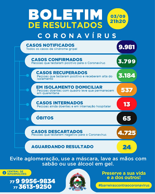 FORMOSA DO RIO PRETO NAO IDENTIFICA CASOS DE CORONAVIRUS NESTE DOMINGO